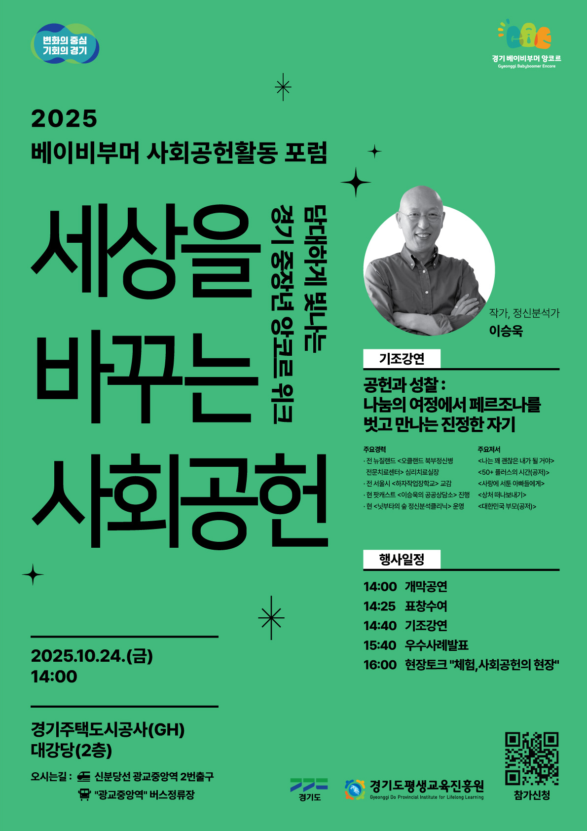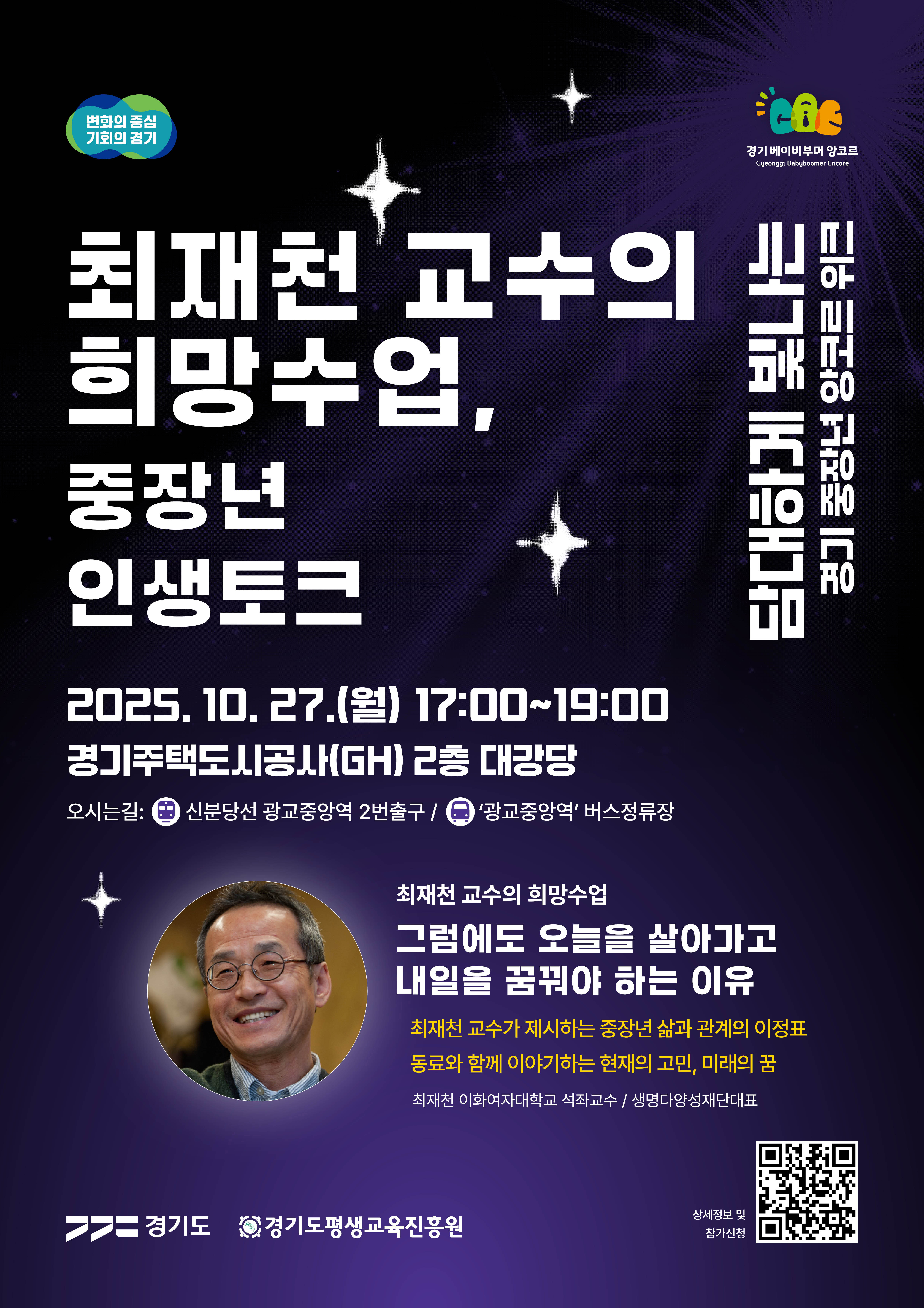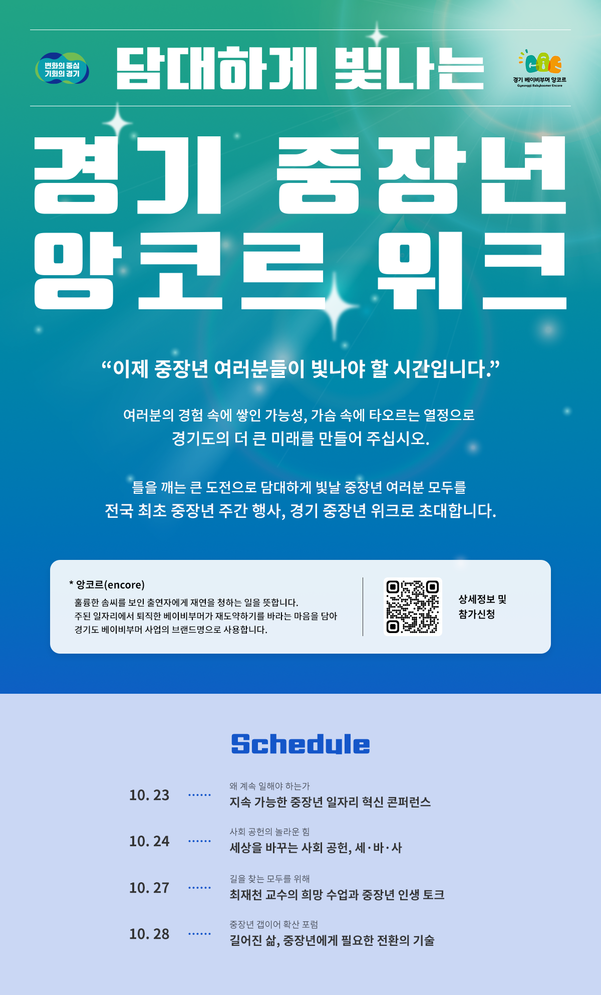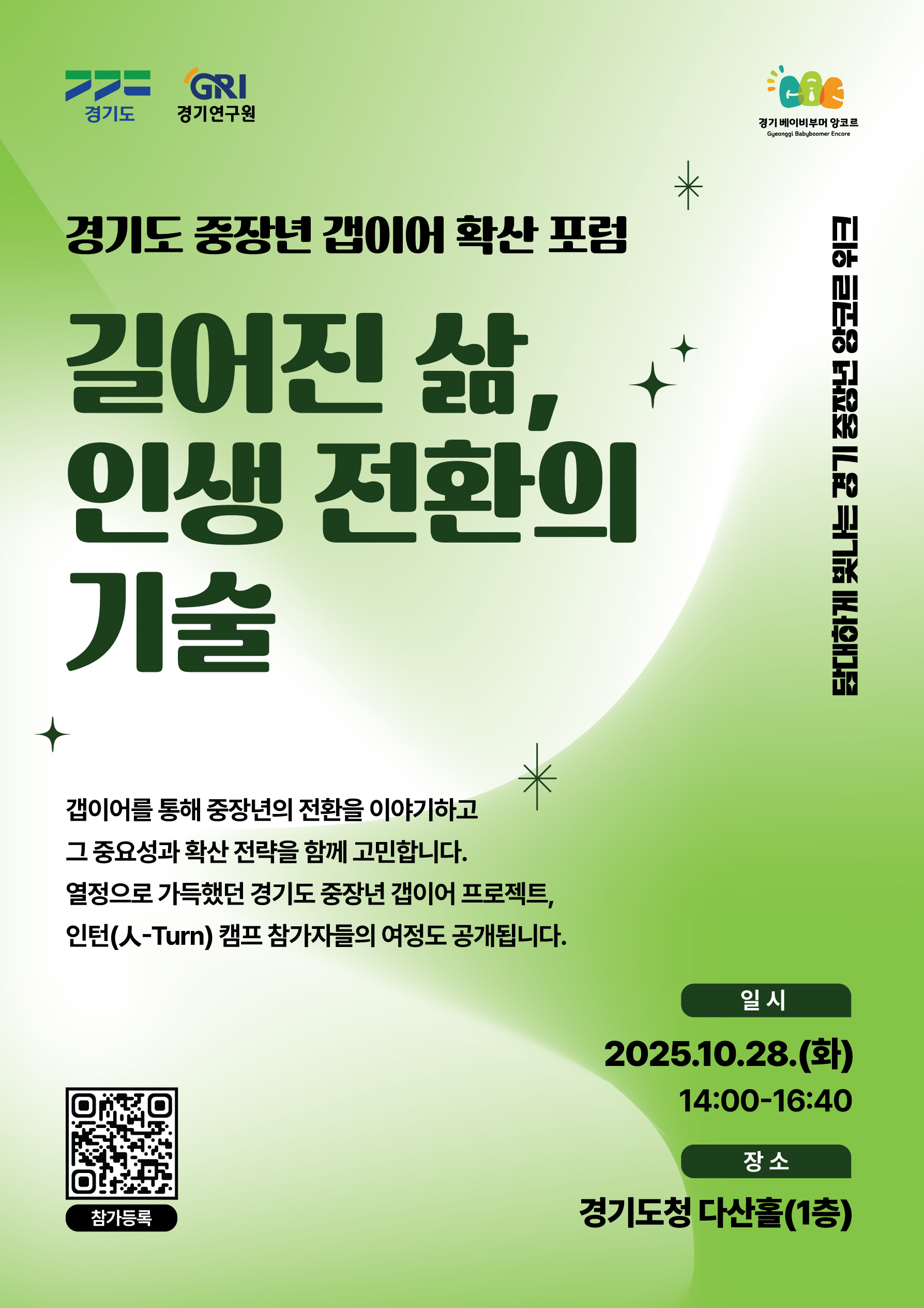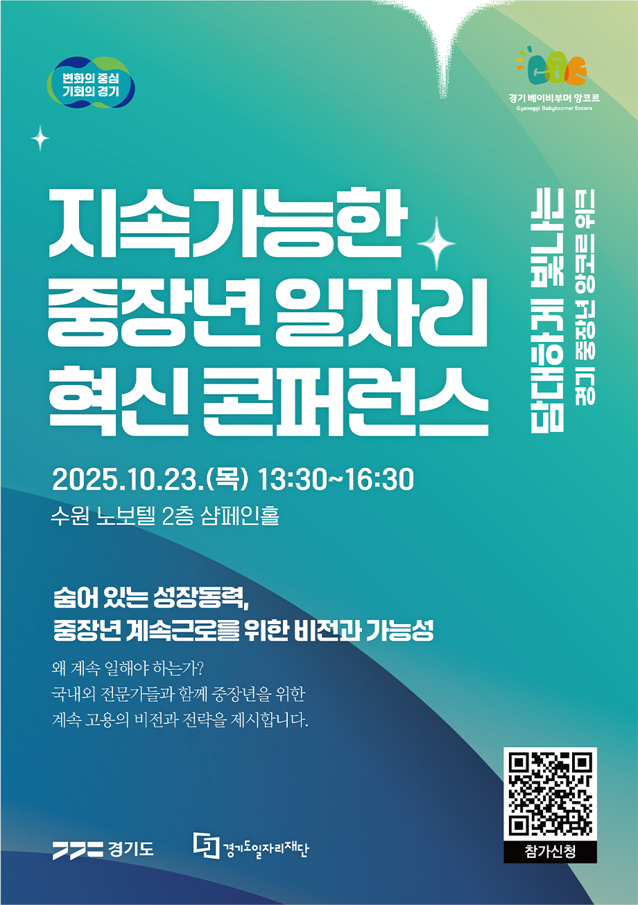 - 인생과 사회를 변화시킨 경기도 중장년의 생생한 경험담도 기대하세요.