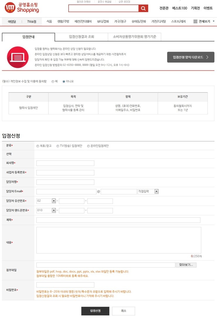 공영홈쇼핑 입점 프로세스의 경우 구매를 목적으로 하는 일반 소비자의 피해를 최소화 하기 위해