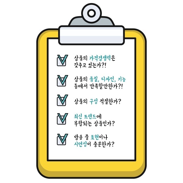 소비자상품평가위원회 소집(내, 외부 평가위원으로 구성하여 방송 판매 가능 여부 결정)
